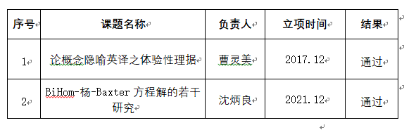 截至2023年4月1日,我院共有2项课题申请结题,9项课题申请延期,12项申请撤销。根据《关于公布2017年度院级课题立项的通知》(上财浙院教字〔2017〕63号)、《关于公布2021年度院级课题立项的通知》(上财浙院教字〔2022〕1号)有关规定,我院对申请结题、延期和撤项的课题材料进行详细审阅后,经过专家评审,其中2项课题符合结题要求,同意结题。现将结果予以公布(见表1)。希望各系(部)、部门要进一步加强对各类课题的管理与指导,希望未达到结题要求以及提出延期的课题组按照有关规定和课题研究计划认真开展研究工作。