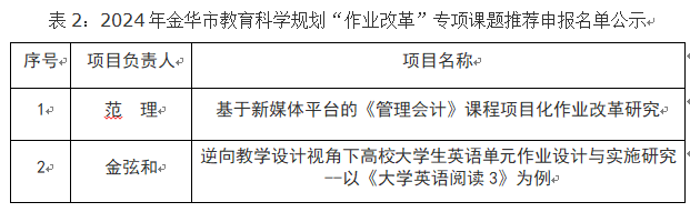 2024年度金华市教育科学规划课题及“作业改革”专项课题推荐申报名单公示