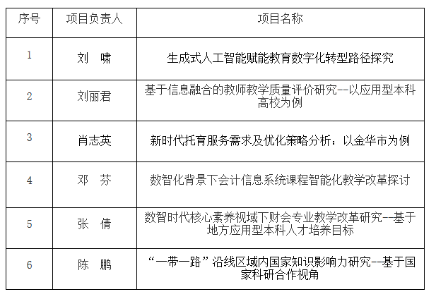 根据《关于开展2024年浙江省教育科学规划课题申报工作的通知》精神,学院于11月份组织校外专家评审推荐工作,现对我院2024年度浙江省教育科学规划年度课题推荐申报名单进行公示(名单如下表所示)。公示时间为2023年11月28日至12月3日。