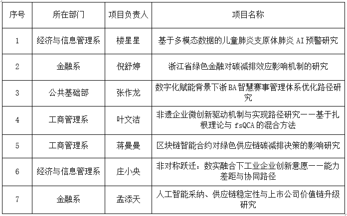 根据《浙江省教育厅办公室关于开展2025年省教育厅一般科研项目立项工作的通知》文件要求,学院于9月份组织校外专家开展评审推荐工作,现将我院2025年浙江省教育厅一般科研项目立项推荐名单公布如下: