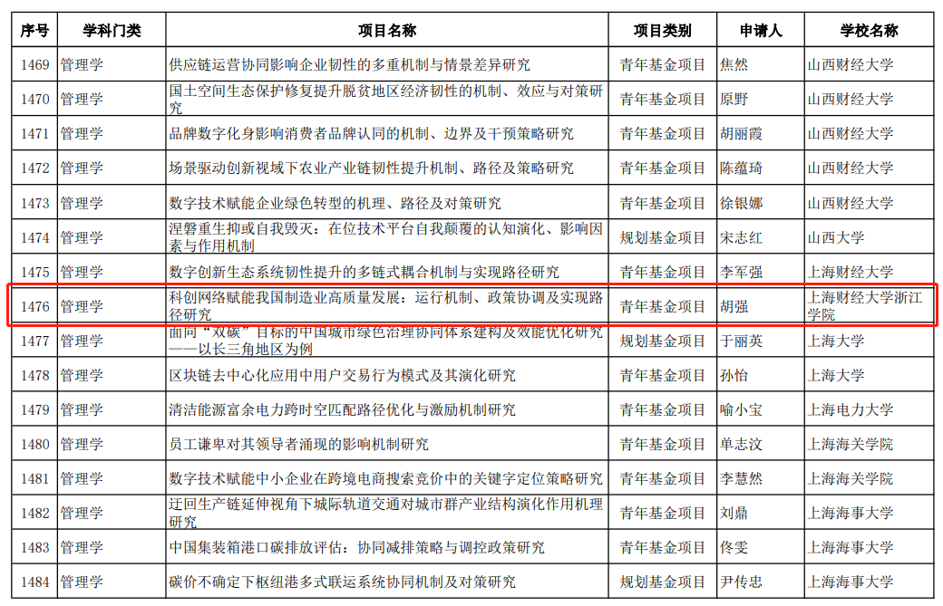 近日,教育部社科司公布了2023年度教育部人文社会科学研究一般项目立项名单,我院工商管理系教师胡强主持的课题《科创网络赋能我国制造业高质量发展:运行机制、政策协调及实现路径研究》获批青年基金项目立项。该课题研究如何提高科创网络运行效率,为关键核心技术攻坚赋能,推动我国制造业向GVC技术环节攀升,进而实现高质量发展。